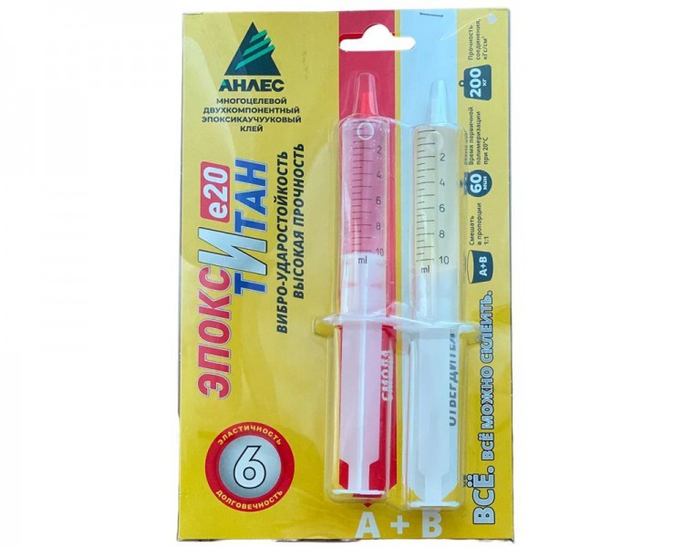 | Клей АНЛЕС ЭпоксиТитан, 20 мл, (бл.) Равнокомпонентный, ударопрочный, эластичный, повышенной прочности