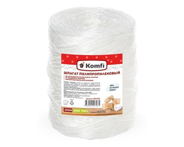 Полипропиленовый шпагат прочен на разрыв, устойчив к влиянию агрессивной среды - к растворителям, щелочам и кислотам, высокой влажности, кипящей воде. Не вытягивается и устойчив к трению и изгибам, не подвержен гниению. Безопасен для здоровья человека.