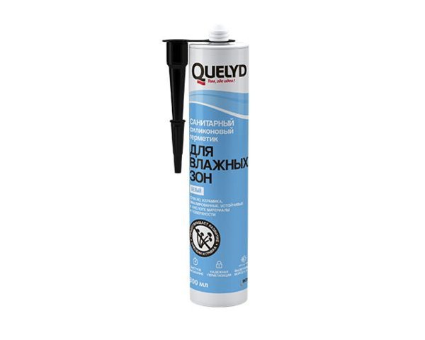 Quelyd «Санитарный силиконовый герметик ДЛЯ ВЛАЖНЫХ ЗОН» —однокомпонентный ацетатный cиликоновый герметик. Отверждается за счет реакции с влагой воздуха.